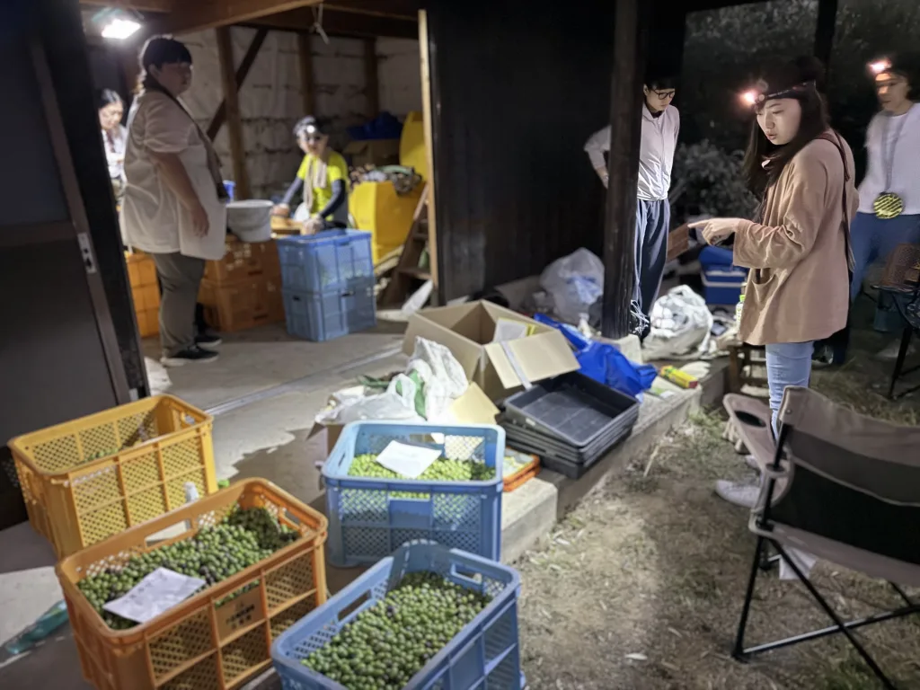 そして収穫後24時間以内の搾油にこだわっているので、日が暮れた後もヘッドライトをつけて選別作業を続行し、当日中に加工場に運びました。のんびりした作業を想像していましたが、けっこうタイトなタイムスケジュールでした笑。