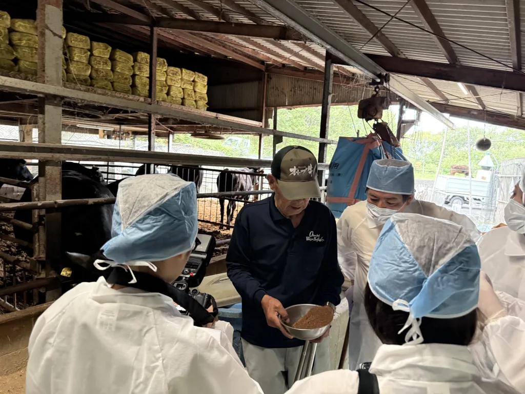 試行錯誤の末、干し柿からヒントを得て、搾りかすを乾燥させることで、牛が喜んで食べる飼料を開発しました。