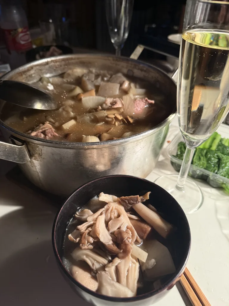 キノコの味が濃ゆくて、信州味噌との相性が最高。酒が進みます。