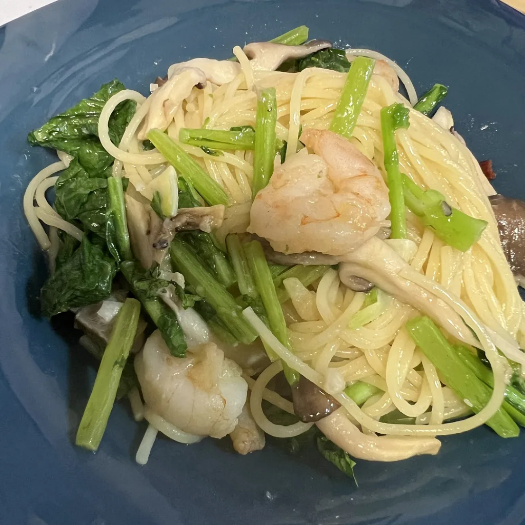 あとは他の具材と一緒に茹でたパスタと合わせ、塩で調えるだけ。
