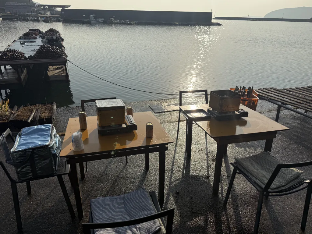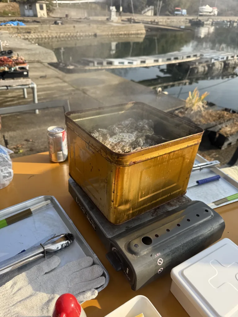 牡蠣の養殖の仕方を教えて頂きました。今年は牡蠣が大不漁の中、準備いただいたとのこと。ありがたいっす。